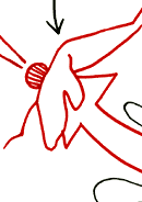 Lieblingspfeil Nr. 527 Zwei Pfeilkonzepte kombiniert Als würde über das, von den roten Linien aufgespannte, Dreieck eine Drachenhaut gespannt... herbstliche Assoziation zu einem zweifarbigem Pfeil, der auf ein 30 Meter entferntes Restaurant weist. Der Pfeil wirkt so deutlich eleganter, gelenkiger, als der Pfeil mit vollstän- diger Dreiecksspitze, der allein aus der fleischfarbenen Form entstünde und hat deutlich mehr Körper als der Pfeil, der allein aus den roten Linien be- stünde... hier werden also zwei Pfeil- konzepte gewinnbringend zusammen- geführt. |