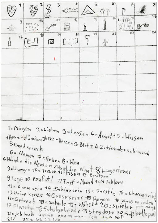 | Beispiele von Symbolen, die die Kinder jeweils für sich oder in kleinen Gruppen erarbeitet haben: |