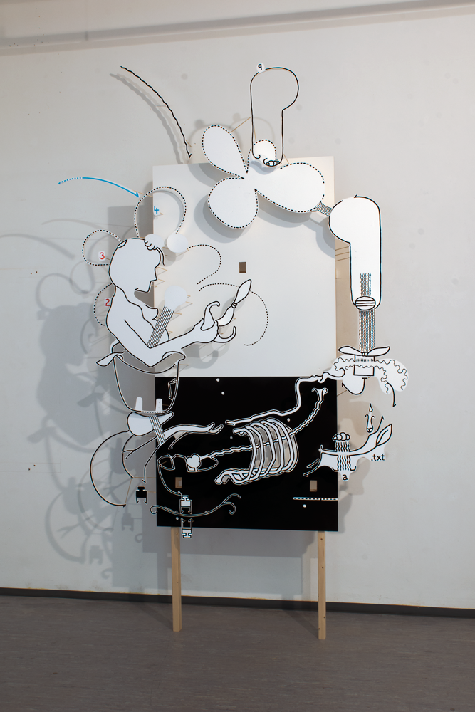 Dokumentation des Ab- und Rückbaus: Aufbau und Rückbau Tafel 2 "Nähe und Knochen"